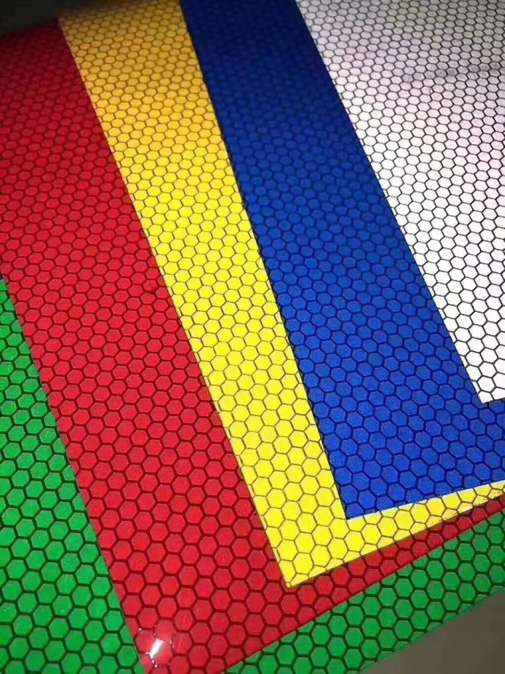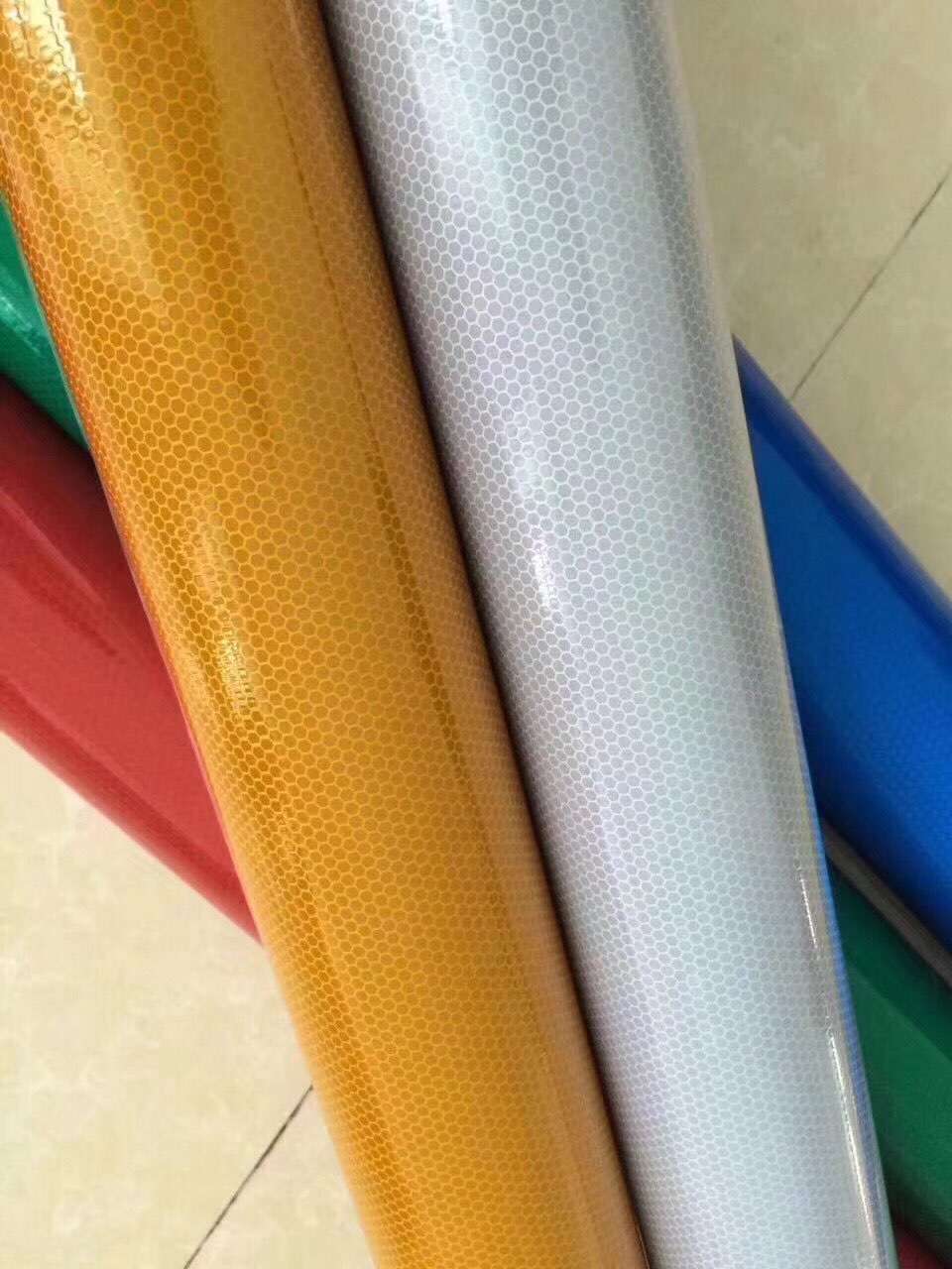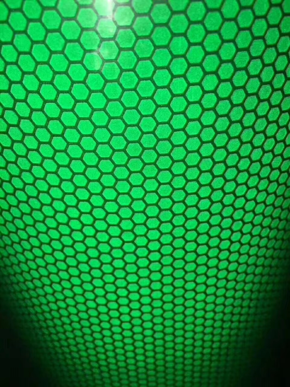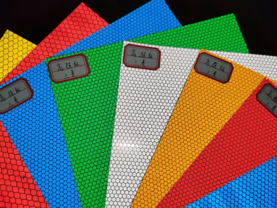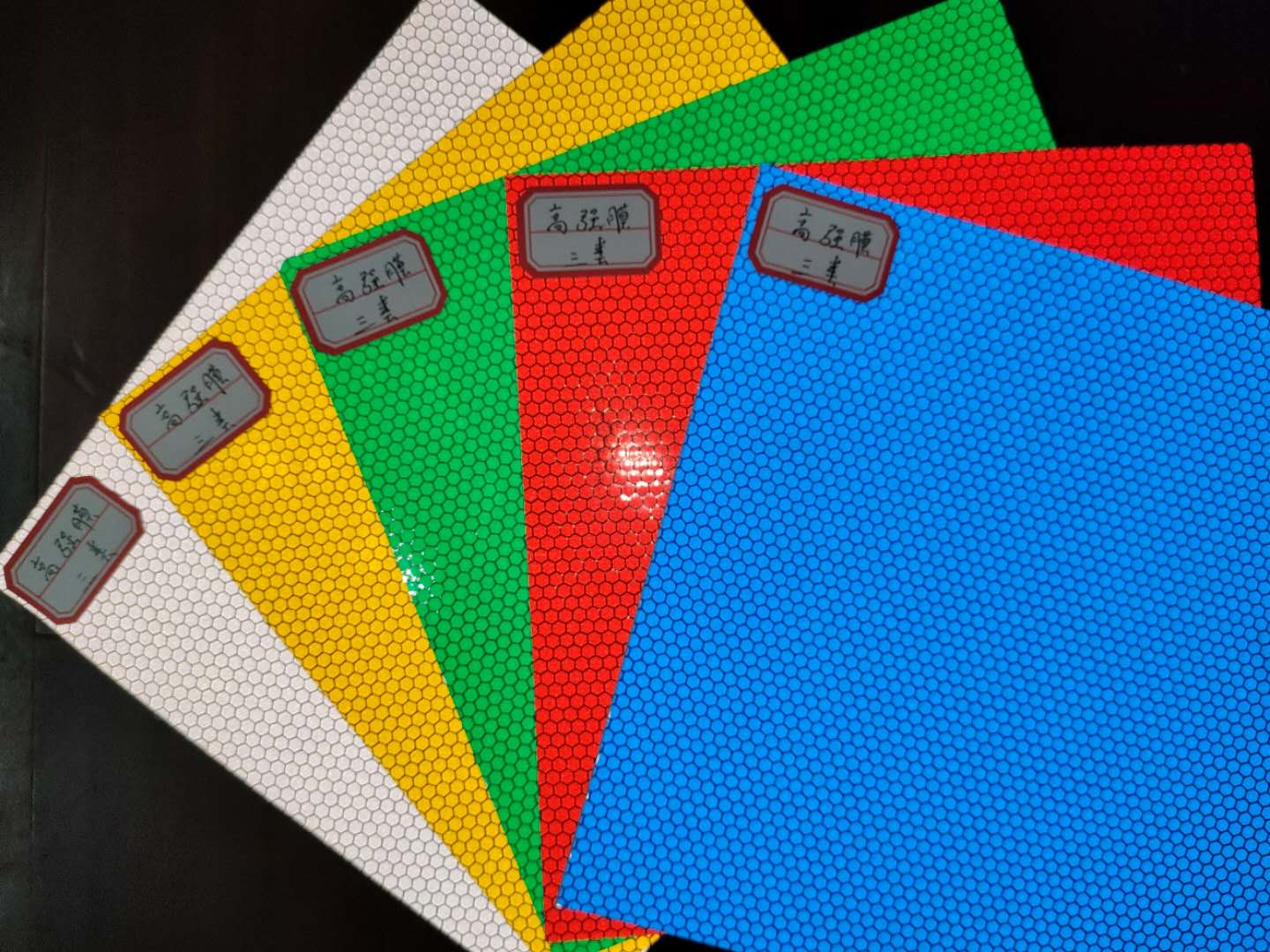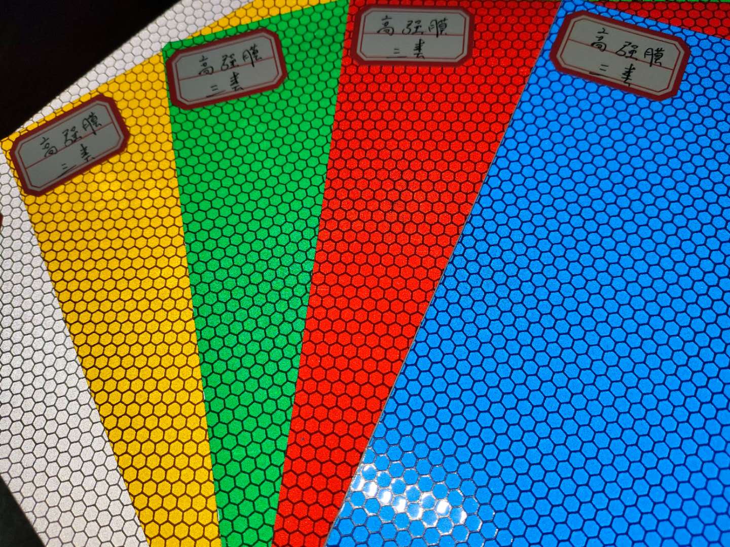 产品名称:交通反光膜III(高强级反光膜),属于玻璃微珠型反光膜。其表面为蜂窝状,采用亚克力面层作为保护层,可加工性能和国标四类相同,可支持UV数码打印,广告文字图案喷绘写真,以及人工的丝网印刷。在最近的几年中被大量用于国家路网改造的项目中,并取得优秀的效果反馈。由于其生产的流程以及生产工艺和所需要的技术相较于微棱镜产品较少也较为简单,这也是其在市场的价格比微棱镜产品较低的原因之一。道路交通反光膜III,国家路网改造专用级别反光膜。